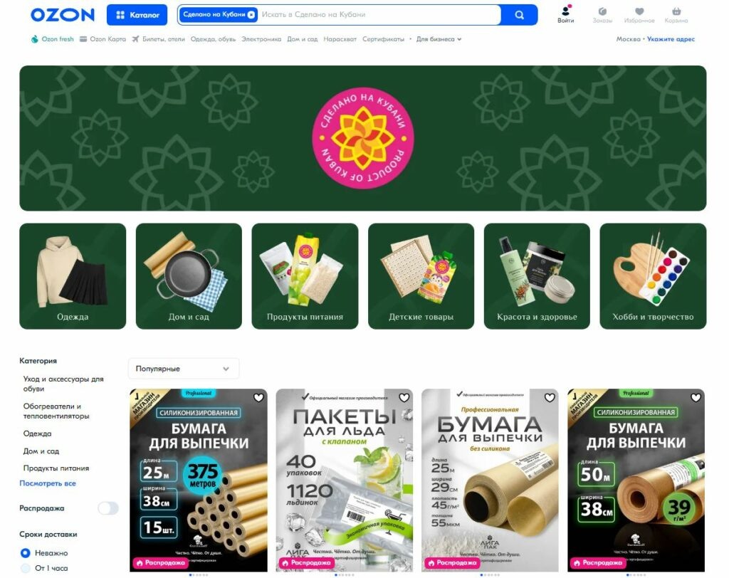 На крупной онлайн-платформе Ozon заработал специальный раздел «Сделано на Кубани». Теперь предприниматели из Краснодарского края могут бесплатно представить свою продукцию широкой аудитории. Проект стал частью инициативы «Сделано в России» и реализуется при поддержке краевого департамента потребительской сферы.