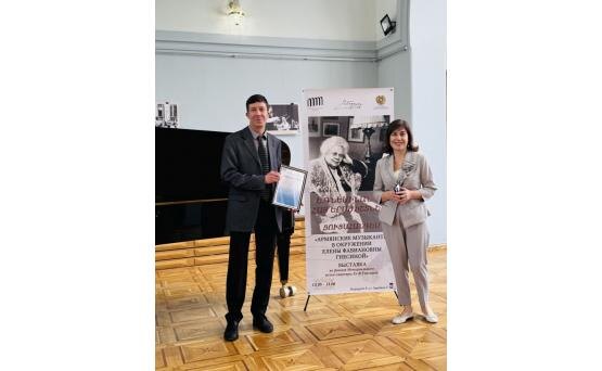 Добавим, что за популяризацию творческого наследия Арама Хачатуряна, за содействие развитию культурных связей между Арменией и Россией, а также за организацию выставки и лекции-концерта в Доме Маэстро Андрею Гапонову была вручена благодарность от имени руководства Дома-музея Арама Хачатуряна в лице директора Армине Григорян.