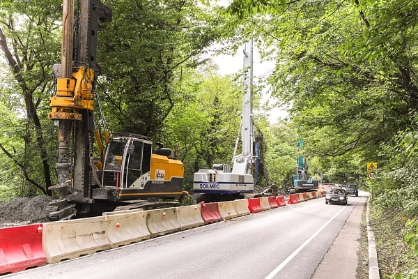 В Хосте укрепляют старую подпорную стену и монтируют армокаркас для новых конструкций. Сваи уже забурены, демонтаж старой стены продолжается. Временная схема движения сохраняется, ограничений для транспорта нет.