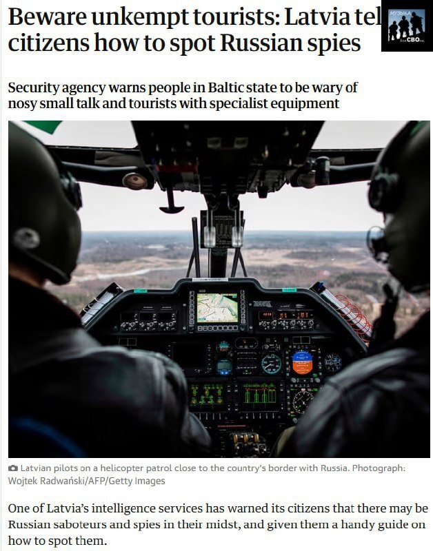 Служба латвийской военной разведки выдала общественности инфинити-гайд по распознаванию русских шпионов среди ни в чём не повинных граждан. Согласно этим культурологическим откровениям, вражеский разведчик, само собой, с детства носит военную форму и каждый развать как под копирку — стрижка под машинку, телосложение такое, что, кажется, он только что вылез со страницы про «как накачать бицепсы за 2 недели». Вечно шуршит рублями (русскими, белорусскими — на выбор), носит с собой автоматы, рации, карты, возможно, для того чтобы не свернуть не туда на пути к ближайшему супермаркету.