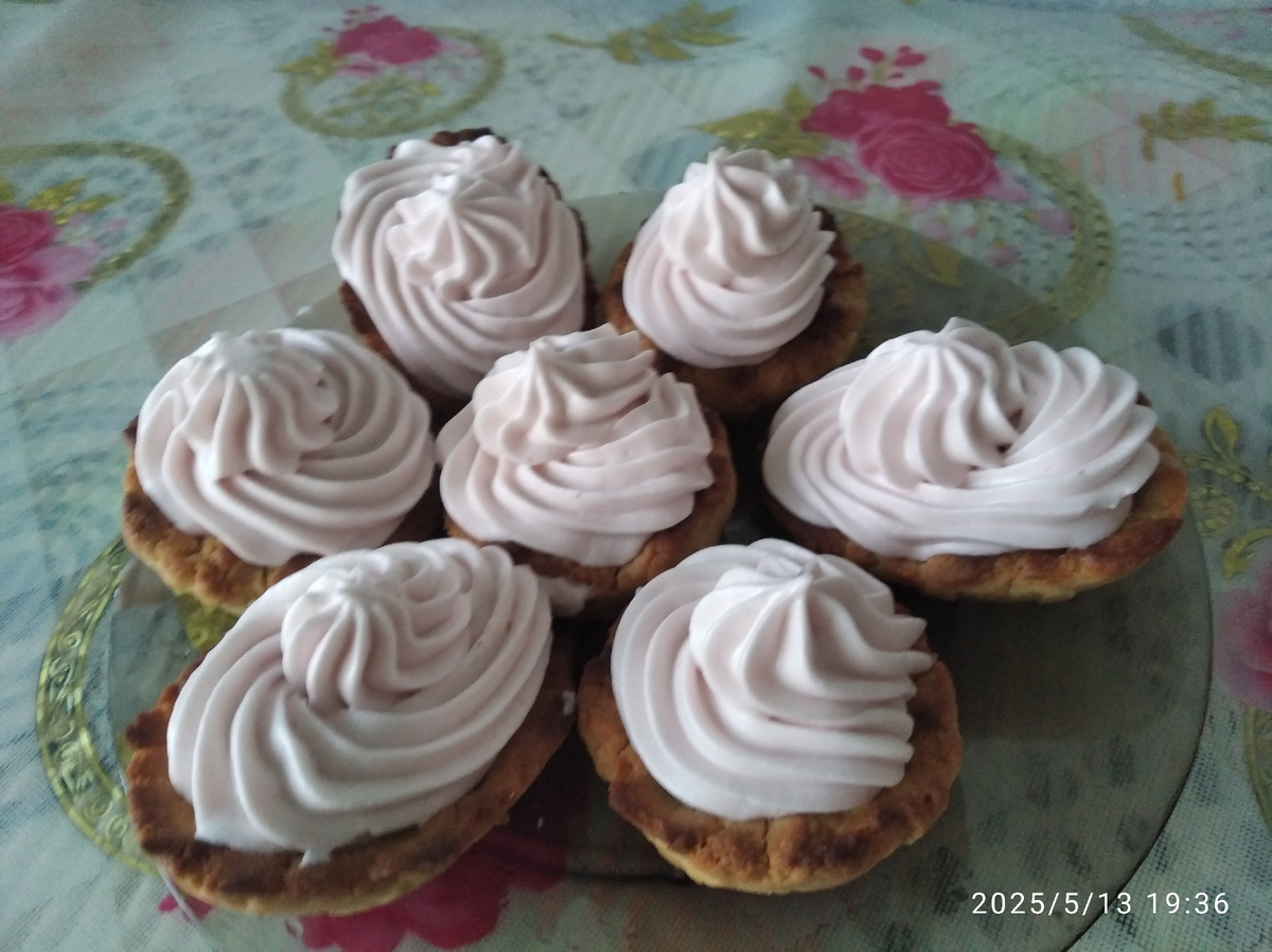 Состав: для теста: -мука-160г. -сливочное масло-100г. -сахар-50г. -яйцо-1желток. -соль-1/6чайная ложка сироп для крема: -клубника-200г. -сахар-200г. -вода-100г. крем: -белок яйца-2 -сироп-200г. -ванилин-1г. -лимонный сок-2-3 капли. Сливочное масло растапливаем, смешиваем с сахаром, желтком яйца, солим, добавляем муку и замешиваем тесто. Делим тесто на 10 частей, конечно всё зависит от величины формочки, у меня формы небольшие, раскатываем каждую до толщены примерно 7мм.,раскладываем в формочки и прижимаем тесто к стенкам форм, удаляя лишнее. Ставим формы с тестом в морозилку для охлаждения примерно на 20 мин. Разогреваем духовку до 240 градусов и ставим корзиночки выпекаться на 15 мин. до золотистого цвета. Вынимаем готовые корзиночки из форм и оставляем остывать. Клубнику с сахаром и водой доводим до кипения и варим ещё около 7 мин. Сироп должен частично оставаться на опущенной в него для пробы ложке, а не стекать весь как вода. Процеживаем ягоду через сито, сироп мы используем в кре