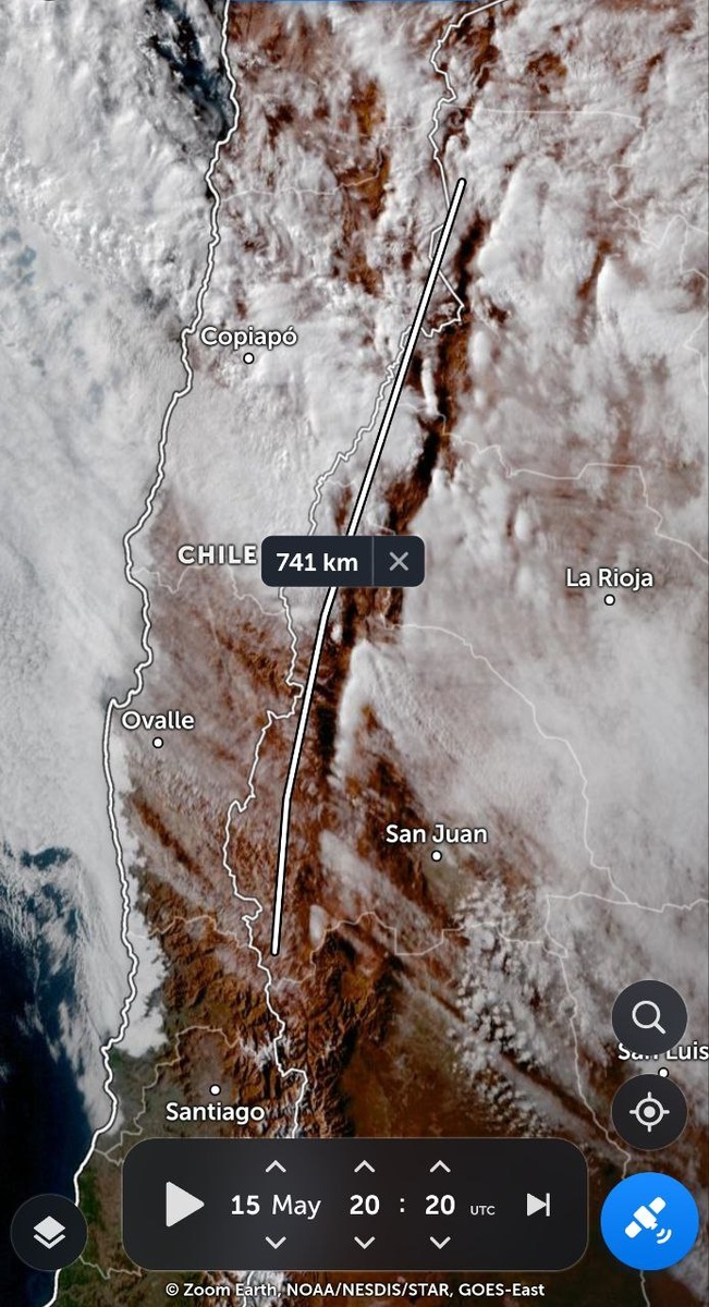 Chile/Argentina were traced at sunset by the type of cloud gap.
