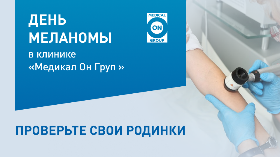 Дорогие друзья! Приглашаем вас на специальные диагностические дни по выявлению меланомы! 🥇"МЕДИКАЛ ОН ГРУП - МЫТИЩИ" - 22 мая 2025 года - Первичный прием врача-дерматовенеролога - 2500 ₽ - Дерматоскопия в подарок* - Скидка 10% на удаление новообразования** На приеме Вы получите консультацию, заключение с фотографией родинки (новообразования) и индивидуальные рекомендации врача. *Акция действует 22 мая 2025 г. на приемы у врача-дерматовенеролога Жуфиной С.Е. **Предоставляется при условии записи в день визита и действует до 31 мая 2025 г. Гистологическое исследование биоматериала оплачивается отдельно, скидка на него не распространяется. 🥇"МЕДИКАЛ ОН ГРУП - БАЛАШИХА" - 26 мая 2025 года Бесплатная диагностика, которая включает в себя: - осмотр врача-дерматовенеролога; - выполнение дерматоскопии. ⏰ Продолжительность приема: 30 минут После осмотра и выполненного диагностического обследования Вы получите устные индивидуальные рекомендации врача. В этот же день, в случае наличия показаний