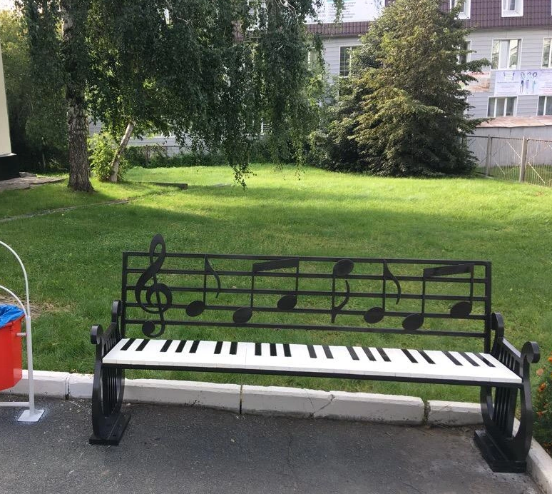 Лавочка-пианино появилась в нашем районе относительно недавно возле музыкальной школы. Корпус скамейки сделан из металла, а часть, раскрашенная под клавиатуру, — из дерева. Авторы идеи объявляли в интернете о намерении поставить красивую скамейку и предложили всем желающим скинуться на неё. На просьбу много людей откликнулось, больше 20 человек. Причём мастера тоже сделали огромную скидку — сказав, что тоже хотят поучаствовать.