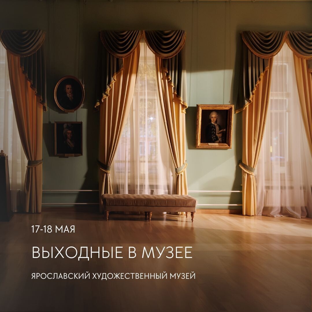 Афиша на предстоящие выходные в #ЯХМ: ГУБЕРНАТОРСКИЙ ДОМ. Волжская набережная, 23 17 мая с 19:00 до 22:00 – всероссийская акция «Ночь музеев – 2025» МУЗЕЙ ЗАРУБЕЖНОГО ИСКУССТВА. Советская площадь, 2 17 мая в 11.00 – занятие детской студии «ОчеВидное рядом» на выставке «Французский музеум князя Н.Б. Юсупова» 17 мая с 17:30 – «Музейный Лэнд-Арт» для всех желающих в саду музея. Попробуйте себя в создании «вышивки на асфальте» или мозаики из мраморной крошки на садовых дорожках. Запись по тел. +7(4852)59-45-30 МИТРОПОЛИЧЬИ ПАЛАТЫ. Волжская набережная, 1 17 мая в 13:00 – сборная экскурсия по экспозиции «Древнерусское искусство XIII–XVII веков» ДОМ НА НОВИНСКОЙ. Тутаев, ул. Ленина, 59/8 17 мая в 15:00 – сборная экскурсия по экспозиции Романово-Борисоглебского городского общественного банка 18 мая – День Музеев! Вход на все выставки и экспозиции – свободный