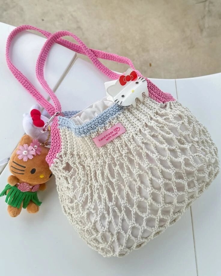 Всем добра, дорогие мои . Хочу вам сообщить что заболела я сумочной болезнью . 😐 Хочется всего и побольше . Начались мои симптомы ещё в прошлом году, когда я начала осваивать рафию . Но потом симптомы стихли и я поуспокоилась. А этой весной мои желания вновь расцвели бурным цветом. Началось все с буклированых сумок , потом все перешло на сумки - чехлы "Лягушки ", а сейчас осваиваю вязание монетницы. Весна, Пинтерест и желание -это просто пушка -бомба, да ещё и WB в помощь, любая нитка, на любой вкус. Вы только посмотрите. Это просто авоська. Обыкновенная авоська, если убрать все подвески и крабик для волос . Но можно взять крючок в руки и на авоське распустятся цветы. Красота же ! Мы все ищем куда же нам деть наши остаточки .Вот вам идея . Помоему очень мило и удобно. Я очень люблю домики, даже плед такой вяжу . Но можно и сумку такую сотворить. А вот эту сумку искусственный интеллект придумал. Если постараться то можно и самой такое забацать . На осень это будет просто раскошес