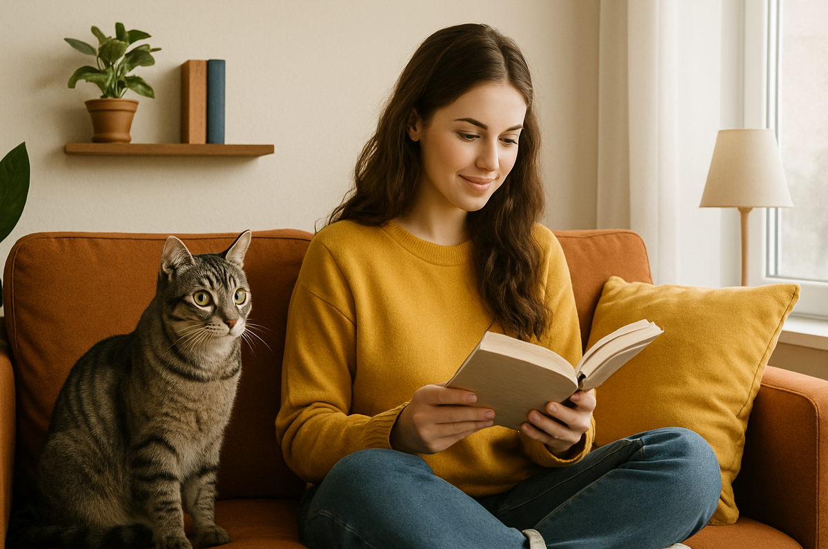 Когда кот решает, что диван — это не просто мебель, а его личная крепость, а все остальные — захватчики. Ты только что устроилась на диване с книгой или телефоном, думая: "Вот, наконец-то, немного времени для себя." Но только ты зашла в комнату, как заметила, что твой кот уже сидит на диване и тщательно осматривает территорию. Он не просто сидит. Нет. Он властвует. 😺 Фаза 1: “Это мой трон, а ты — гость.” Ты решаешь сесть рядом, но как только твои ноги касаются дивана, кот поднимает свою пушистую попку и выглядит так, как будто сказал: "А ну-ка стой, это моё место!" Ты мягко пытаешься его сдвинуть, но кот не двигается. Он, словно на страже, сидит прямо в центре дивана. Его глаза на тебе, как на непрошенном визитёре. "Ты что, по-настоящему думала, что ты тут главный?" — он как будто передаёт этот взгляд. 🐾 Фаза 2: “Ой, ну ладно, если ты не хочешь уйти…” Ты решаешь не спорить. Ты садишься рядом с ним, но тут он начинает неосознанно занимать ещё больше места. Ты пытаешься двигаться, но