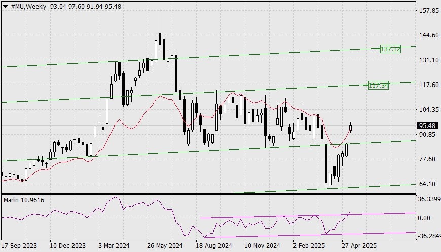 https://basechop.ru/wordpress/?p=42915 Покупка акций компании Micron Technology (#MU) Micron – производитель электронных носителей информации. На недельном графике цена закрепилась над ближайшей вложенной линий ценового канала. Сигнальная линия осциллятора Марлин закрепилась над нулевой линией и вышла над границу собственного ценового канала. Первой целью движения выступает следующая линия ценового канала на отметке 117.34. Далее возможен рост к линии ценового канала в район 137.12. На дневном масштабе цена закрепилась над индикаторными линиями баланса и Крузенштерна. Продолжается рост над линией ценового канала. Ждём цену у 1-й намеченной цели. Покупку акций компании Micron хеджируем продажей Chevron Corporation (#CVX). На графике недельного масштаба цена находится в продолжительном нисходящем ценовом канале. На текущий момент цена развивается под индикаторными линиями баланса и Крузенштерна, осциллятор Марлин находится на территории понижающейся тенденции. Снижающаяся цена нефти…