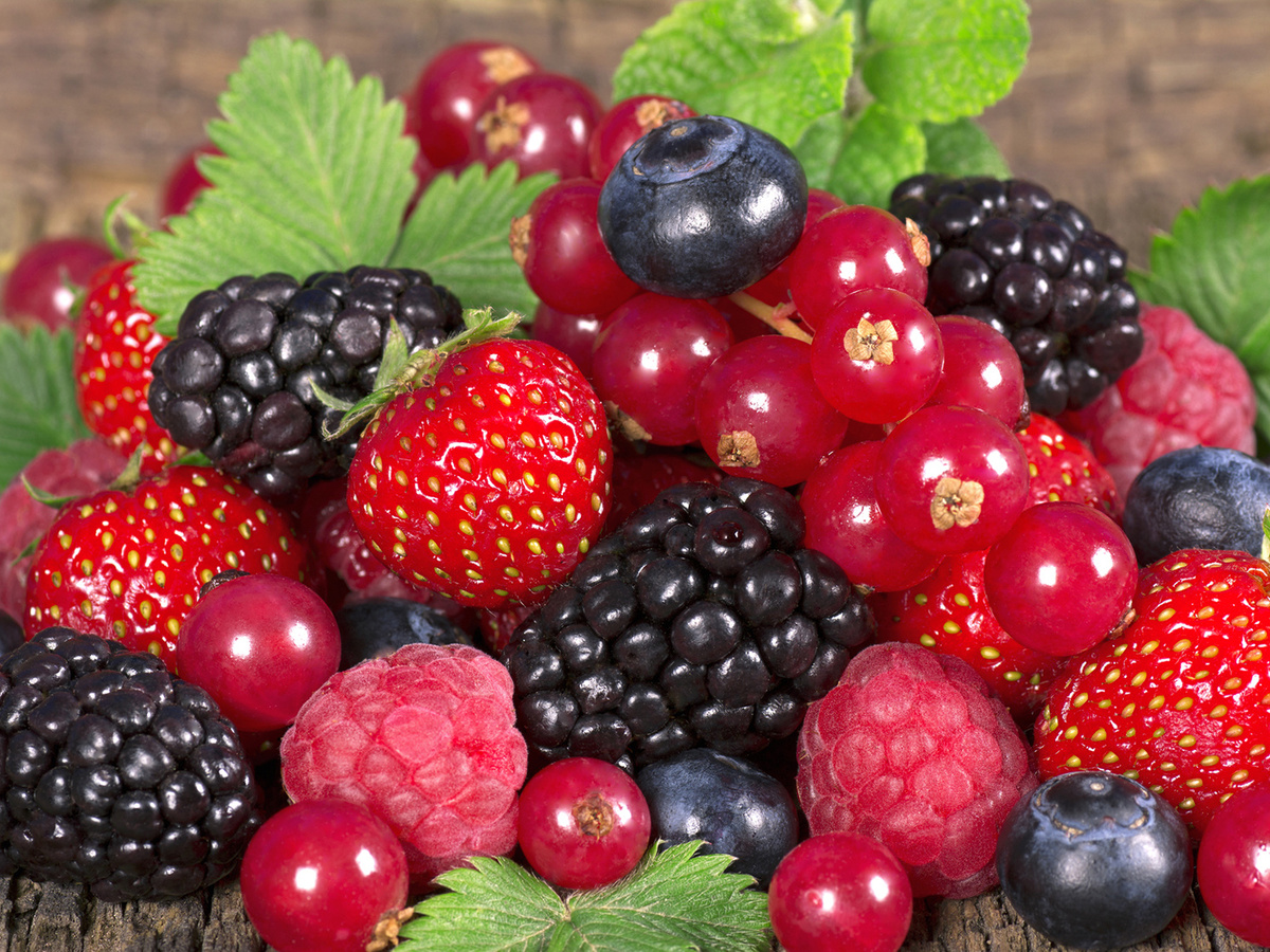 Внимания заслуживают темно-красные и фиолетовые плоды, к числу которых относят темный виноград, ежевику, черноплодную рябину, вишню и голубику. Главное достоинство ягод темно-красного и фиолетового цвета — это наличие в них в большом количестве лютеина. Это антиоксидант, благоприятно действующий на органы зрения. Еще в темно-красных плодах содержится немалое количество антоцианов, полезных для сердца и сосудов и снижающих нервное напряжение. Вспомните только о пользе черноплодной рябины, способной нормализовать давление у гипертоников.