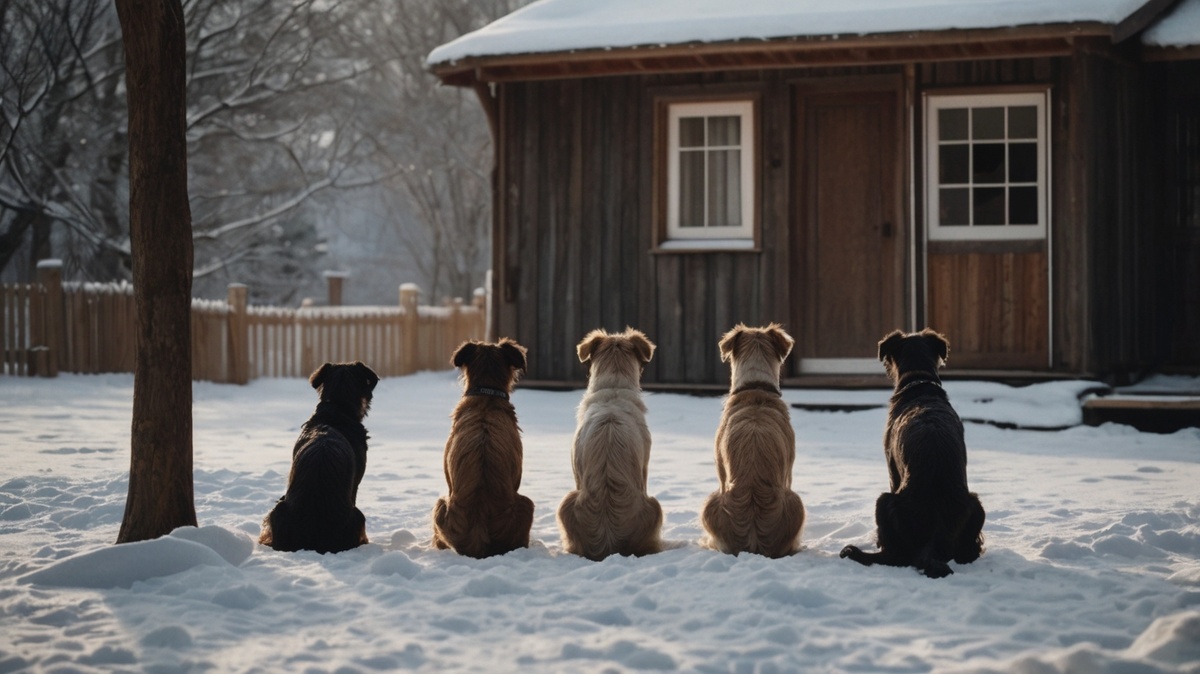 Стая. Шесть, может, семь штук. Разные — один чёрный, как уголь, другой с рыжими пятнами, ещё были серые, лохматые. Один с коротким ухом, видно, битый. Но не злобные. Просто смотрели. На крыльцо не шли. Стояли на границе сада, как будто спрашивали.