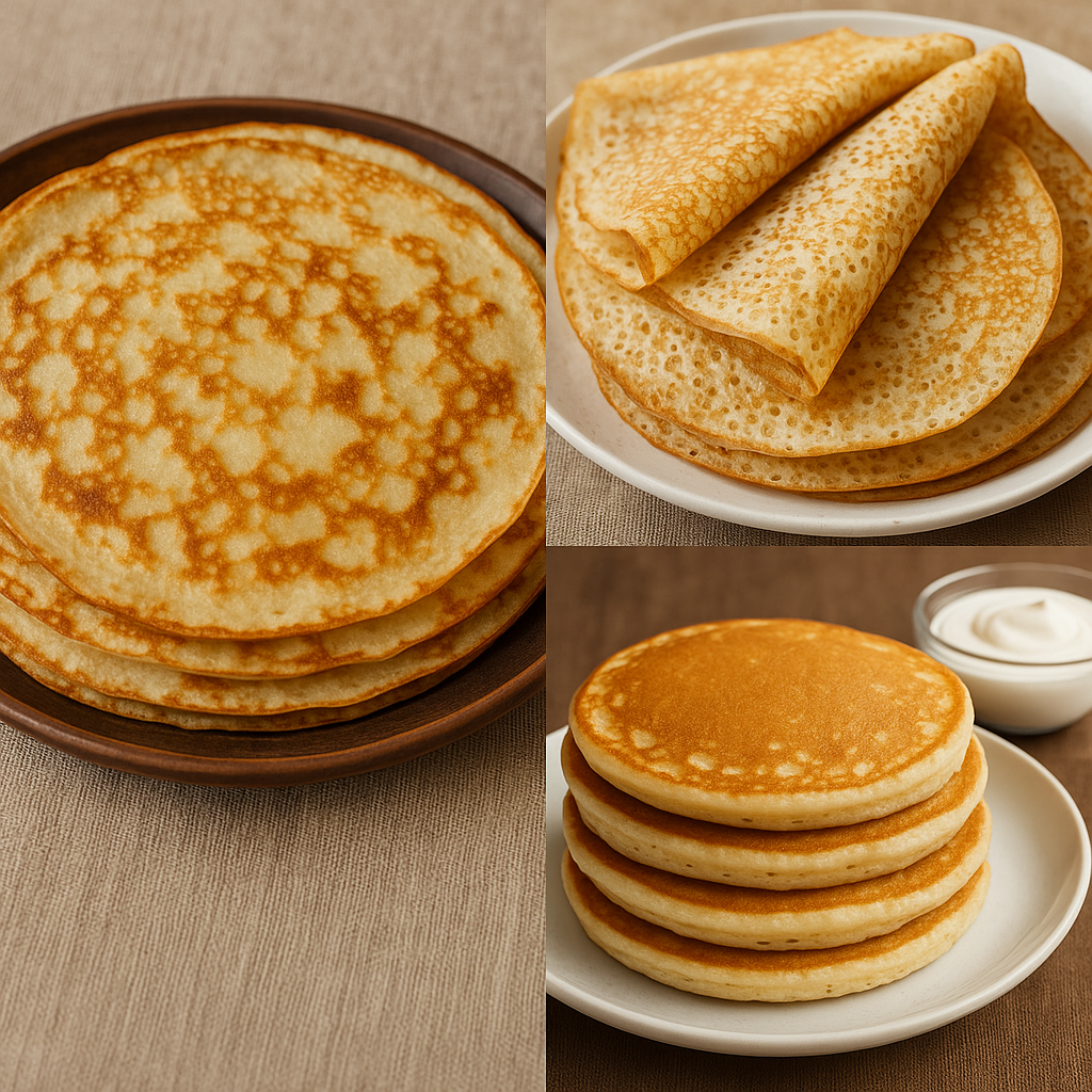 Каждый из нас хотя бы раз стоял у плиты с мыслями: «Ну почему они опять рвутся?», «Почему вместо румяных кружочков — нечто комковатое и липкое?». Знакомо? Тогда вы точно оцените эти три рецепта блинов, которые получаются всегда — без слёз, без сюрпризов и без километров грязной посуды. 1. Классика, которая не подводит Ингредиенты: Как готовить: Смешайте яйца с сахаром и солью, влейте молоко, постепенно добавляйте муку, чтобы не было комков. В конце — масло. Тесто должно быть консистенции питьевого йогурта. Жарьте на хорошо разогретой сковороде без масла. Фишка: Если дать тесту постоять 15–20 минут, блины будут ещё нежнее. 2. Тонкие как кружево — на кипятке Ингредиенты: Как готовить: Сначала замесите тесто на молоке, затем аккуратно влейте кипяток. Именно он придаёт блинам кружевную текстуру. Не забудьте про разрыхлитель! Фишка: Добавьте каплю ванили — запах сведёт с ума. 3. Блины на кефире — пышные и сытные Ингредиенты: Как готовить: Смешайте все ингредиенты, дайте тесту