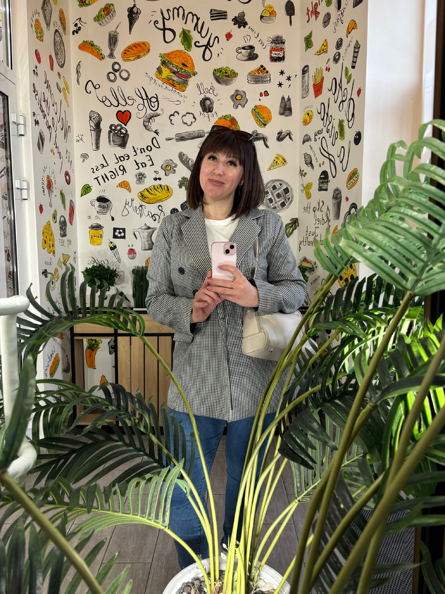 Потому что все мои платья мне малы, а в джинсах очень даже удобно, а пиджак-оверсайз отлично маскирует все мои проблемные зоны.