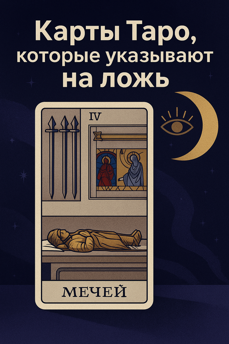 Ты спрашиваешь Таро: «Правду ли он говорит?» «Могу ли я ему доверять?» И карты отвечают — если ты умеешь слушать. Есть символы лжи, манипуляции, скрытности, которые не всегда читаются буквально. Иногда ложь прячется в улыбке. Иногда — в молчании. А иногда — в раскладе. Вот 5 карт, которые часто указывают на ложь — и как это понять по ситуации. 1. Семёрка мечей — классика обмана Изображён человек, крадущийся с украденными мечами. Это обман, скрытность, утаивание. Кто-то делает что-то за твоей спиной. Если выпала: Будь особенно осторожна. Не говори всё, что знаешь. Не доверяй полностью. Кто-то рядом ведёт двойную игру — и улыбается. 2. Луна — иллюзии и страхи Карта про сумерки разума. Здесь не ложь в лоб, а туман, путаница, самообман. Если выпала: Проверь, не обманываешь ли ты себя. Кто-то может не лгать прямо — но вводит в заблуждение, скрывает, искажает. 3. Верховная Жрица — молчание и сокрытие Это карта тайны. Глубокой. Молчаливой. Часто она означает, что тебе не говорят чего