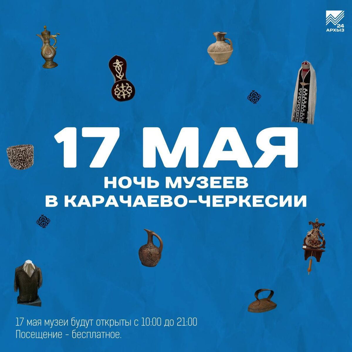 🏳️Карачаево-Черкесия присоединится к акции «Ночь музеев» В этом году тема акции - «Герои» - она посвящена подвигу советского народа в Великой Отечественной войне, ее бессмертным героям. Вас ждут: 🤩экспозиции, посвященные героизму советских солдат и офицеров; 🤩экскурсии, рассказывающие о подвигах наших земляков; 🤩мероприятия для всей семьи. 🤩17 мая с 10:00 до 21:00 🤩Посещение - бесплатное 🤩Сохраняйте карточки со списком музеев, участвующих в акции. Источник: Архыз 24