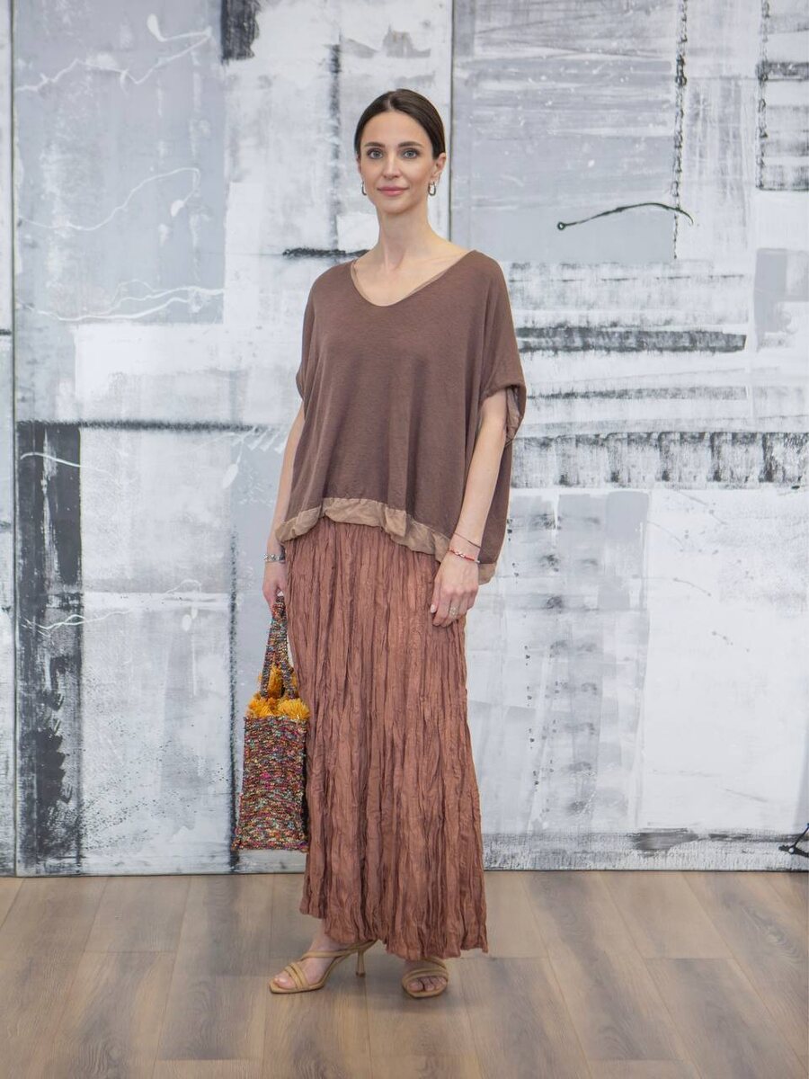 Элегантный и запоминающийся образ в роскошных шоколадных оттенках от бренда PRAECHTIG BERLIN — идеальное предложение для стильного гардероба современной женщины.