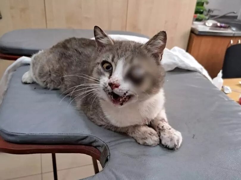 В Ростовской области спасают кота с разбитой челюстью и опухшим глазом