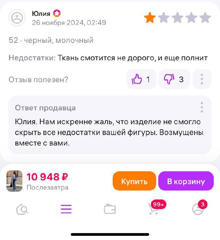 Уровень клиентоориентированности — продавец женской одежды на маркетплейсе.