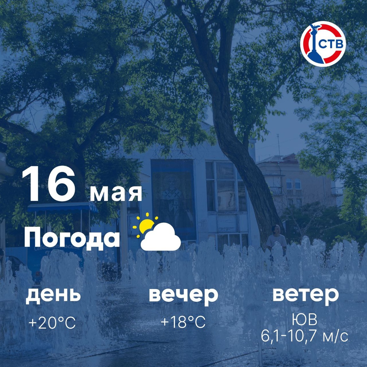 🌤️ Доброе утро, севастопольцы! Сегодня, 16 мая, в городе переменная облачность. Всем удачного завершения рабочей недели! 📺 Подписывайтесь на СТВ