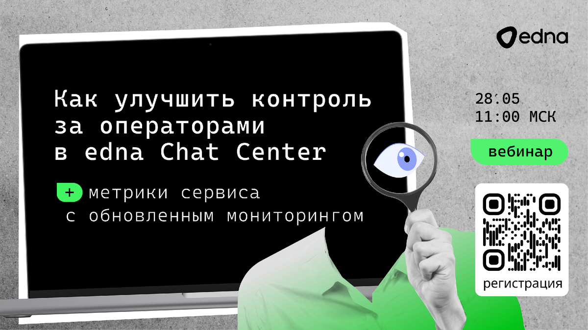 edna проведет бесплатный вебинар «Как улучшить контроль за операторами и метрики сервиса с обновленным мониторингом в edna Chat Center», 28 мая в 11:00 (Мск).