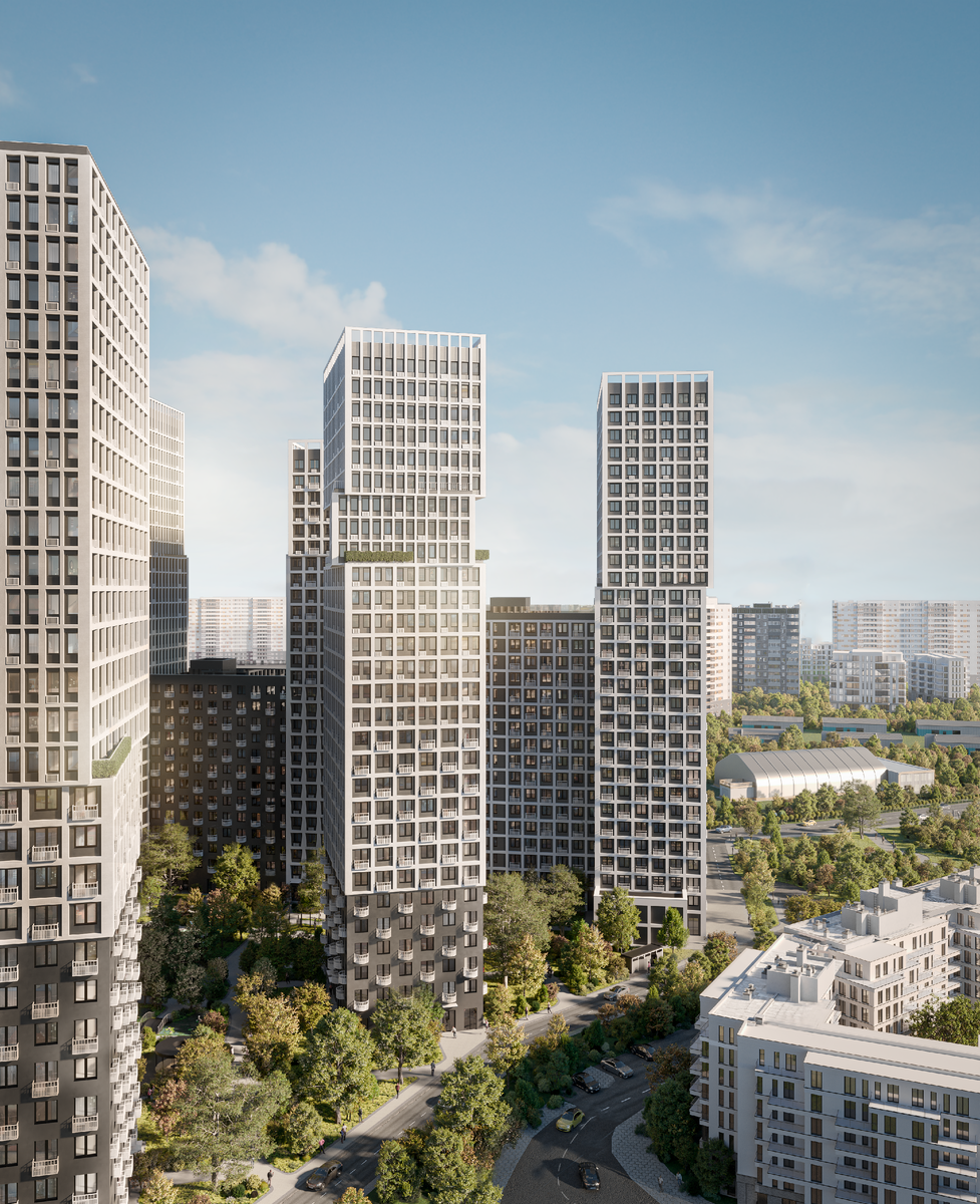 Комплекс состоит из семи жилых домов переменной этажности (от 5 до 30 этажей), предлагая разнообразные планировки от студий до четырёхкомнатных квартир. Внутренняя инфраструктура включает подземный паркинг, кладовые, детское пространство с тьютором, коворкинг, тренажёрный зал, кинотеатр на крыше и другие удобства.