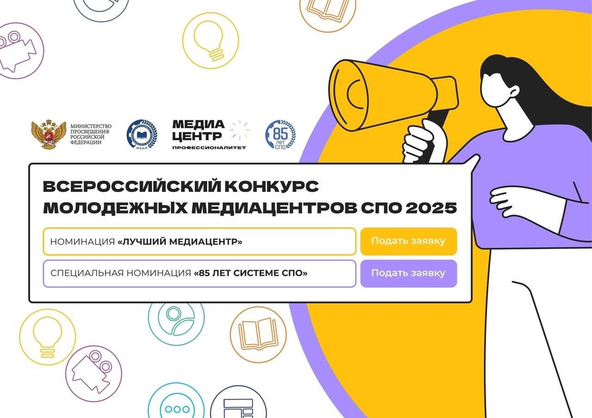Внимание, креаторы «Профессионалитета»! 😳 Эта новость, которую вы точно ждали. Запускаем Всероссийский конкурс молодежных медиацентров СПО 2025 — и это ваш шанс заявить о себе! 🤭 Кто может участвовать? Команды молодежных медиацентров: 1 руководитель + до 5 студентов. 🎂 Конкурсные номинации: - «Лучший медиацентр» - «85 лет системе СПО» Все подробности и условия участия — по ссылке. 🔺Покажите всей России, на что вы способны! Институт развития профессионального образования реализует федеральный проект «Профессионалитет» нацпроекта «Молодежь и дети» по поручению Минпросвещения России. #Профессионалитет #ИРПО #85летСПО