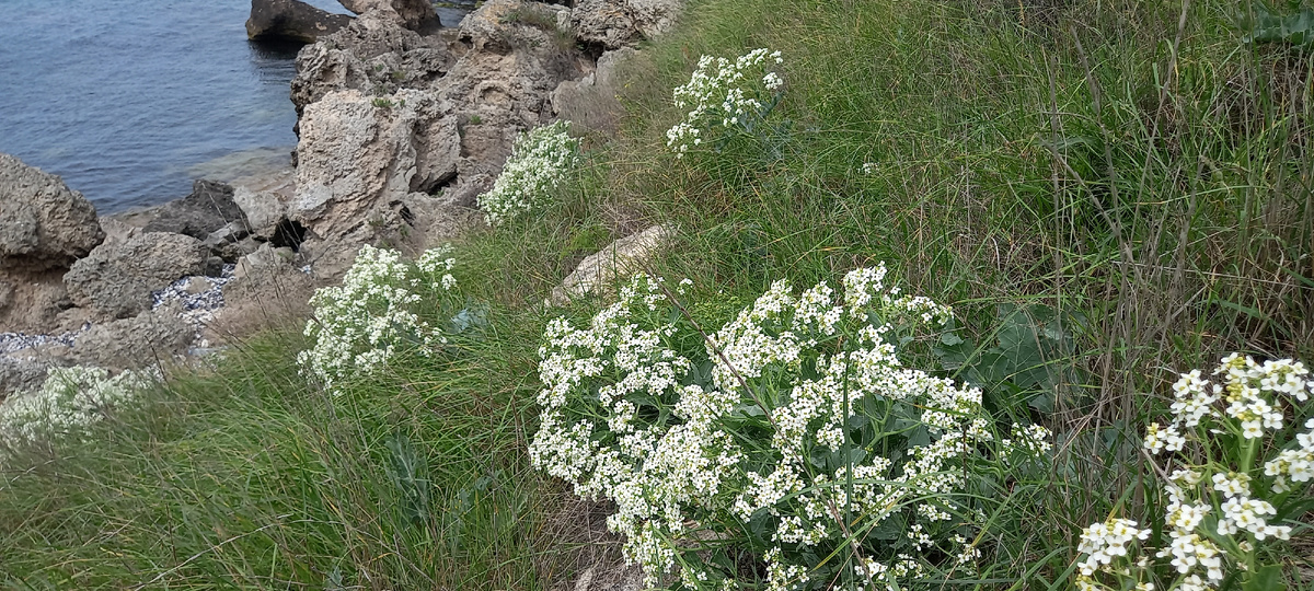 Май продолжил эстафету апреля. Цветы повсюду. На даче расцвели ирисы. В степи - ковыль. Бухта встретила меня медовым запахом катрана. Самый красивый цветок, который растет на побережье Азовского моря. Обилие мелких белых соцветий напоминает морскую пену. Как-будто волны выбросилие на берег эти чудесные цветы с грозным названием "катран" . Это одно из самых неприхотливых растений. Не боится засухи. Стебли и листья сочные, мясистые. Сок из них можно использовать для лечения ран. Катран сьедобен и полезен, укрепляет иммунитет. Растение хорошо горит, поэтому в переводе означает "смолистый факел" Хорошо защищает морские побережья от разрушения и дает пищу насекомым. Не одна я оказалась на берегу. Появился еще один ценитель прекрасного Весна идет, Весне дорогу Отправляемся на берег моря любоваться цветами, похожими на морскую пену!