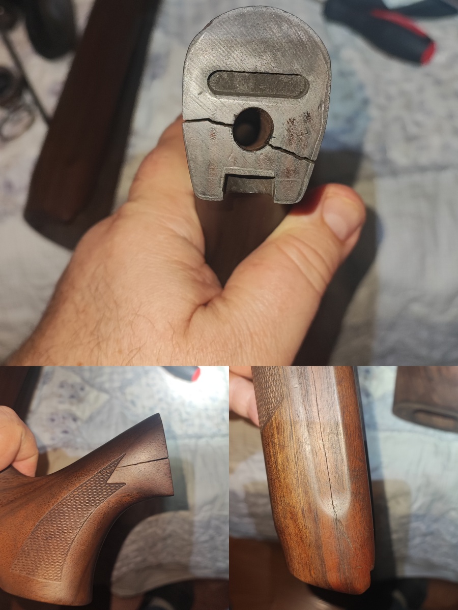 Я давно уже отношусь к своему любимому ружью (МР-155) как к автомату Калашникова - взял из сейфа и пошел куда решил - в лес, в болото, в поле и т.д. И давно не рассматриваю его вожделея выстрела. Чищу - раз в сезон, после его окончания, ну и если уж совсем припекло, например если пришлось охотится в жуткий ливень или в грязь упало. Видимо поэтому я и не обратил внимание ни на треснувший приклад, ни на цевье. Ну а планка, даже не знаю обо что я ее мог погнуть...