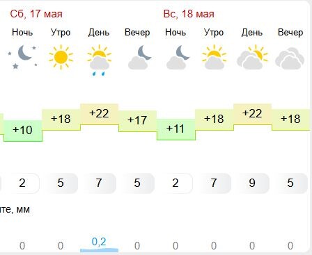 Температура воздуха в субботу и воскресенье поднимется до +22 градусов Долгожданное тепло ожидается в Костроме уже в эти выходные, 17 и 18 мая. Об этом сообщает Гидрометцентр области. В субботу температура воздуха днем поднимется сразу до +22 градусов. Ночью она составит +10. Осадки ожидаются в минимальном количестве — до 0,2 мм. Скорость ветра будет в пределах семи метров в секунду. В воскресенье температура воздуха аналогична субботе, с той лишь оговоркой, что ночью будет на градус теплее. Скорость ветра поднимется до девяти метров в секунду. Осадков не ожидается В оба дня будет солнечно с переменной облачностью.