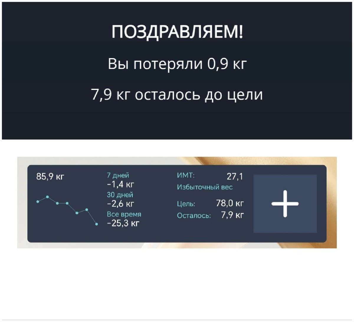 🏋️♂️ Ремонт + усиленные упражнения. 🍔 День похудения: 128 🗓 16.05.25 ⚖️ Вес: 85.85кг ⬇️-0,95 кг🥳 🎯 Цель: 78КГ ➖ Осталось скинуть: 7,85 кг 💪 Всего скинуто: 25,35 кг ❌Не в норме: Возраст тела: 35 лет ⬇️-1 год🥳 ИМТ: 27,1 ⬇️-0,3🥳 Жир(%): 26,5 % ⬇️-0,5%🥳 Жир(кг): 22,75кг ⬇️-0,69 кг🥳 Белок: 15,4% ⬆️+0,1%🥳 Вода: 50.3% ⬆️+0,3%🥳 Обмен: 1741 ккал ⬇️-15ккал😱 Висцеральный жир: 11⬇️-1 🥳 ✔️В норме: Мышцы: 59,9кг ⬇️-0,3 кг😱 Скелетные мышцы 41,2 % (35,37кг) ⬇️-0,13 кг😱 Кости: 3.2 кг 🤔 Выводы: (не забудьте развернуть бокс снизу, нажав на него) 🔸 Вот это я понимаю результат! 🔸 На год помолодел, единицу висцерального жира согнал, почти 1 кг веса ушел! 🔸 Сегодня день обычных домашних тренировок. Надо задуматься над тем, чтобы повысить нагрузку обычных тренировок... 🔸 Походу ВИИТ тренировки имеют результат, согнана единица висцерального жира! 🔸 На улице солнце, по прогнозу +16. Погода приходит в норму, это кайф! 🔸 План на утро: Завес, Кофе, Посты, Ребенка в сад, Дела по