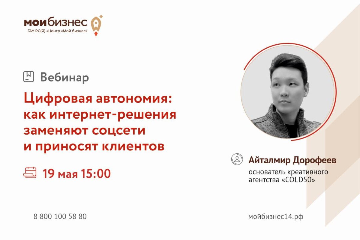 🚀Центр Мой бизнес приглашает принять участие в вебинаре: «Цифровая автономия: как интернет-решения заменяют соцсети и приносят клиентов