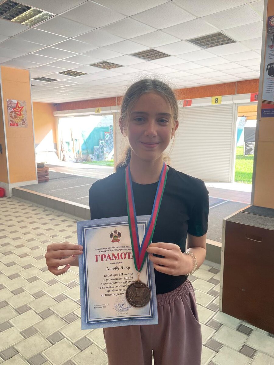 🔴 В Краснодаре прошли краевые соревнования по стрельбе из пневматического оружия «Юный стрелок Кубани». В них приняли участие 115 спортсменов из шести муниципалитетов. СШ «Крымская» представляли Ярослав Коваленко, Александр Воронин, Артем Степаненко, Ника Сонова и Мария Таможникова. Ника Сонова в упражнении ПП-30 с результатом 258 очков завоевала бронзовую награду. К соревнованиям спортсменов подготовил тренер-преподаватель отделения пулевой стрельбы Константин Александрович Горшков.