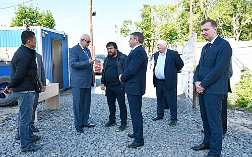 На сегодняшний день завершается строительство спортивного зала и блока Г (где будет расположена столовая), построена переходная галерея от основного здания. Ведутся кровельные работы на здании спорткомплекса. На основном здании продолжаются работы по разводке внутренних коммуникаций, ведутся отделочные работы: оштукатуривание стен, стяжка полов, уклад-ка напольной плитки и плитки в санузлах. Выездное совещание по строительству школы. / ФОТО Юлии Фроловой К.С. Доморовский обратил внимание министра, что подрядная организация ведет работы недостаточно активно, отставание от графика на сегодняшний день не сокращено, акты выполненных работ за последний месяц подрядчик не предоставил. На претензии со стороны Администрации Аксайского района подрядчик не реагирует. С.В. Куц согласился, что темпы работ необходимо серьезно наращивать, нужно увеличить количество рабочих на объекте, вести работы в две смены. На исправление ситуации министр дал подрядчику две недели. МБУ АР «Райстройзаказчик» продо