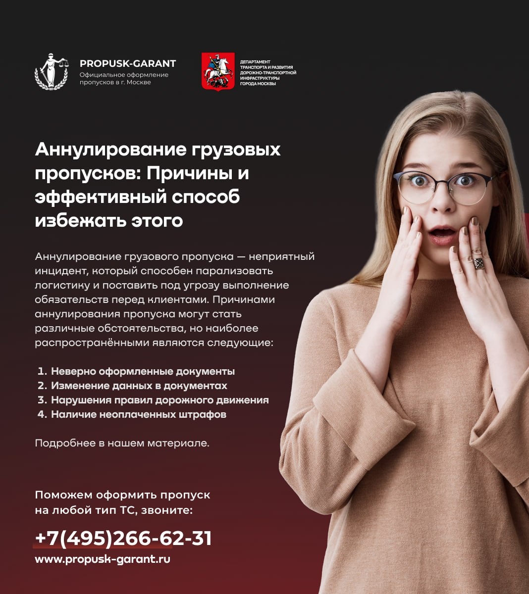 Аннулирование грузового пропуска — неприятный инцидент, который способен парализовать логистику и поставить под угрозу выполнение обязательств перед клиентами. Причинами аннулирования пропуска могут стать различные обстоятельства, но наиболее распространёнными являются следующие: 1. Неверно оформленные документы Иногда пропуск может быть аннулирован из-за допущенных ошибок в оформлении документов. Например, некорректно указанное название предприятия, неправильный государственный номер автомобиля или неверно введённый маршрут следования могут послужить основанием для отмены разрешения. 2. Изменение данных в документах В ходе контроля нередко обнаруживаются несоответствия в документах вследствие перерегистрации транспортного средства, смены собственника или внесения иных поправок. Если такое расхождение выявлено, пропуск подлежит отмене. 3. Нарушения правил дорожного движения (ПДД) Многие пропуски аннулируют из-за систематического нарушения правил дорожного движения. Сюда относится п