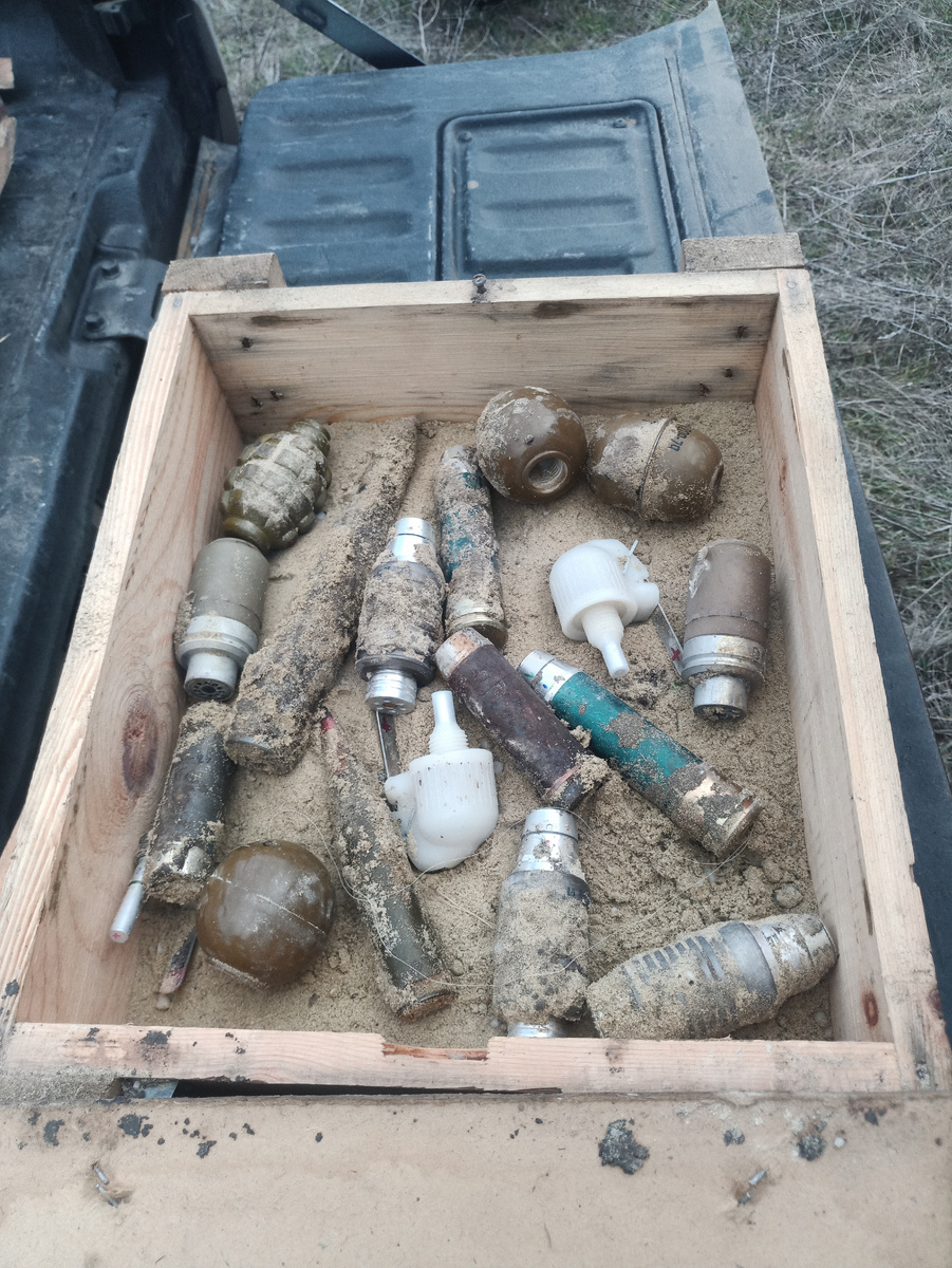 В результате инженерно-технической разведки участка в Херсонской области были обнаружены взрывоопасные предметы (ВОП). Решено было уничтожить их путем подрыва на месте. Для этого использовался накладной заряд из шашек ТНТ.