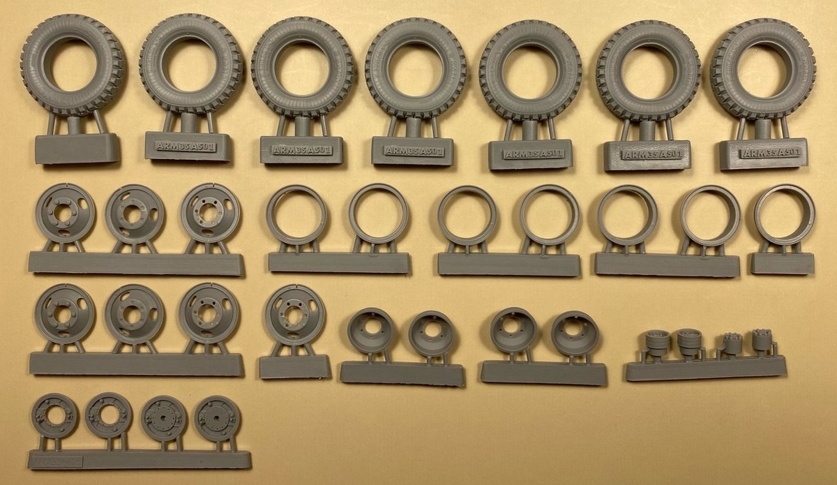ARMOR35 из Москвы выпустила отлитые из полиуретановой смолы колеса с шинами "КАМА" У-2 (шоссейная версия) для модели ГАЗ-66 в масштабе 1/35