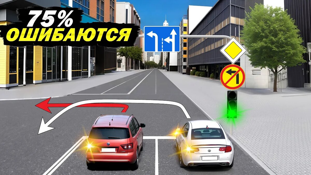 Всем привет, уважаемые автолюбители! Мы продолжаем цикл разборов интересных дорожных ситуаций. Сегодня разберем непростую ситуацию, которая наверняка заставит помозговать даже опытных водителей. Предварительный опрос показал 75% неправильных ответов. Предварительные опросы я провожу в своём Telegram-канале, там регулярно выходят новые и, главное, оригинальные задачи на тему ПДД. Подписывайтесь и решайте задачи вместе! А в данной задаче необходимо выяснить, Водитель какого автомобиля нарушит правила, выполнив задуманный манёвр. На выбор представлены следующие варианты ответа: Правильный ответ вы найдете после разбора задачи, но не спешите в него подглядывать. Попробуйте самостоятельно решить задачу, а лишь потом сверяйтесь с правильным ответом. На картинке с заданием мы видим два легковых автомобиля, которые подъехали к перекрёстку с одного направления. Водитель белого автомобиля находится в правой полосе, и на перекрёстке он намерен выполнить разворот. Водитель красного автомобиля зан