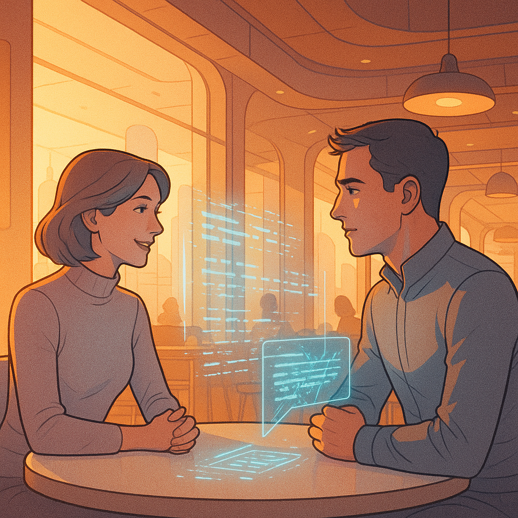 Сел за стол и открыл ноутбук. Руки были тяжёлыми. Писать письмо самому не хотелось. Нет, не так. Писать не мог. Перед глазами была Алина. Улыбка с лёгкой иронией. Голос, будто забытую музыку нашёл на старой пластинке. Третья встреча прошла в кафе, пропахшем корицей. Говорили о фильмах и о будущем. Слова оставались на поверхности. Боялся быть скучным. Боялся быть собой. Ночью по дороге домой хотелось сказать что-то важное. Но слова не приходили сами. Тогда открыл чат с GPT и ввёл: «Напиши любовное письмо девушке. Тёплое. Настоящее. Как будто знаю её с детства». ИИ молчал секунду. Потом выдал текст. Слова были просты и прозрачны, как дыхание на морозе. В них звучала нежность, которую никогда не позволял себе. Там были чувства, давно забытые. Читал текст и понимал, что сам не сумел бы сказать лучше. Письмо было идеально. Лучше, чем его собственные слова. Колебался недолго. Нажал отправить и закрыл ноутбук. Утром пришёл ответ: «Ты наконец открылся. Я почувствовала, это действительно ты». С