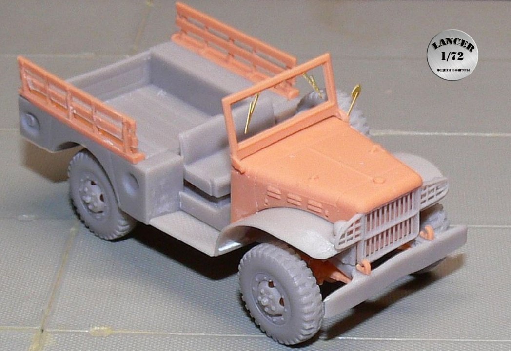LANCER из Москвы показала тестовую сборку своих смоляных моделей Dodge WC-51 и штабного фургона Dodge WC-53 в масштабе 1/72.