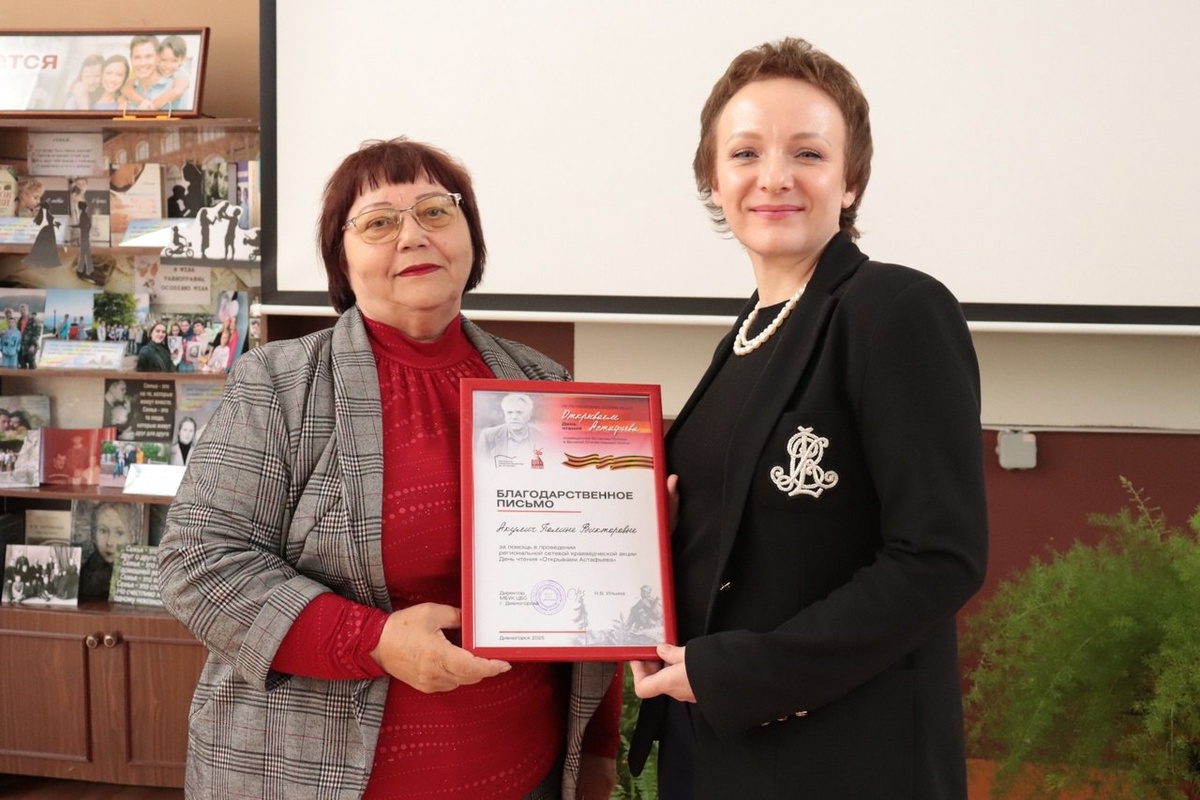 📚 В Центральной городской библиотеке им.В.Н. Белкина состоялась VIII региональная сетевая акция День чтения «Открываем Астафьева» в Дивногорске. 📅 В 2025 году акция посвящена 80-летию Победы. Участники прочитали отрывок из повести «Пастух и пастушка» и посмотрели буктрейлер. Выступила Полина Викторовна Акулич, рассказав о чтении книг Астафьева участниками СВО. Завершилось мероприятие просмотром видеоинтервью с Виктором Петровичем. В мероприятии участвовали студенты Дивногорского медицинского техникума и Дивногорского техникума лесных технологий, ученики школ №2 и №5. По информации Центральной городской библиотеке им.В.Н. Белкина