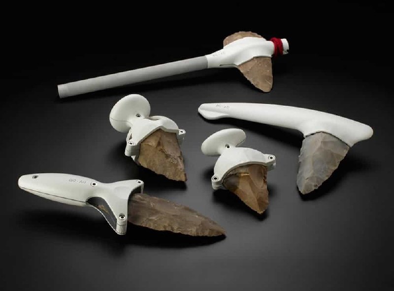 Если бы первобытные орудия использовали сегодня. На фото показан проект израильских дизайнеров Эми Драч и Дова Ганчроу. Они изучали искусства скалывания — примитивную технологию изготовления орудий труда, когда одним камнем скалывают другой. И решили поэкспериментировать, что будет, если добавить к каменному острию современные ручки из пластика. Вот бы древние люди обалдели, если бы такое увидели!