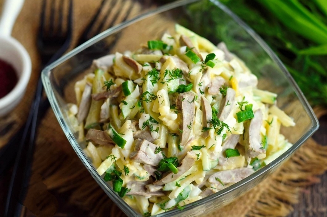 Как быстро и вкусно удивить гостей? Готовим салат с куриными сердечками и огурцом! 🥗
