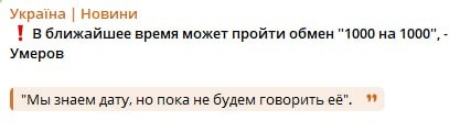 Украина анонсировала скорый обмен по формуле 1000 на 1000