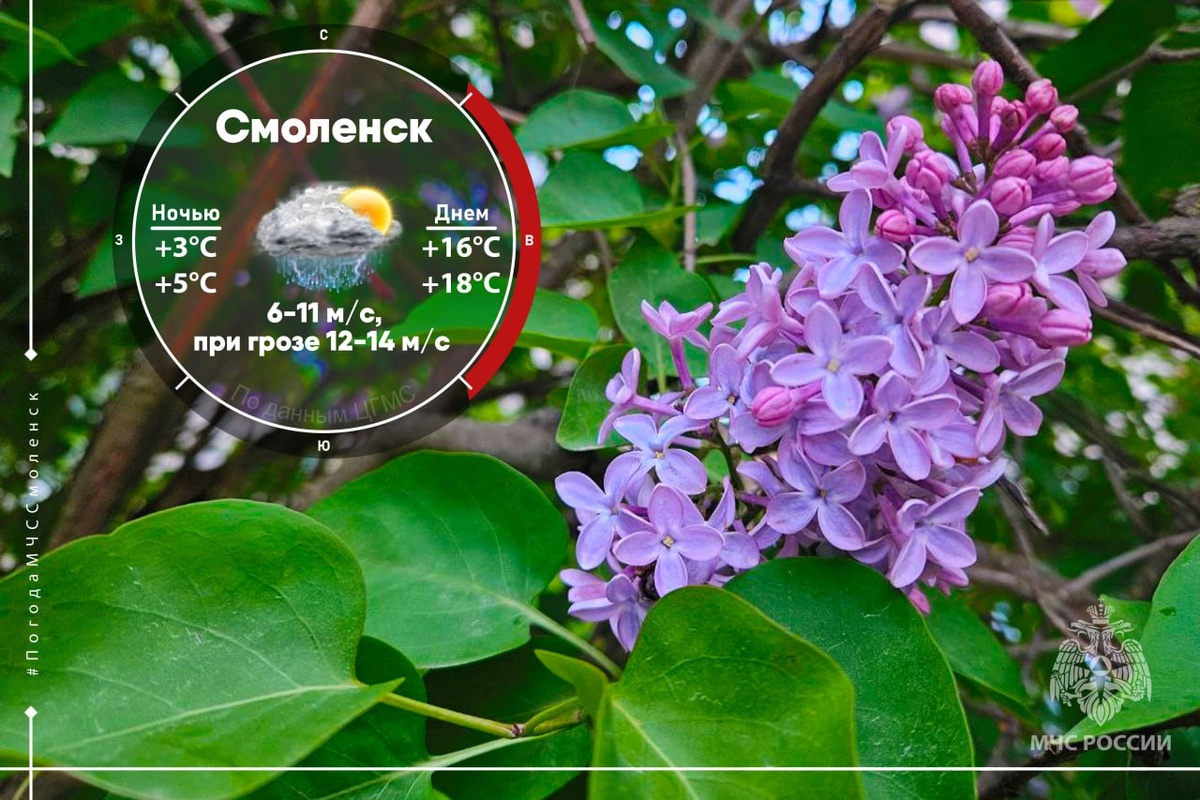 - в Смоленске: ночью +3°C … +5°C, днем +16°C…+18°C.