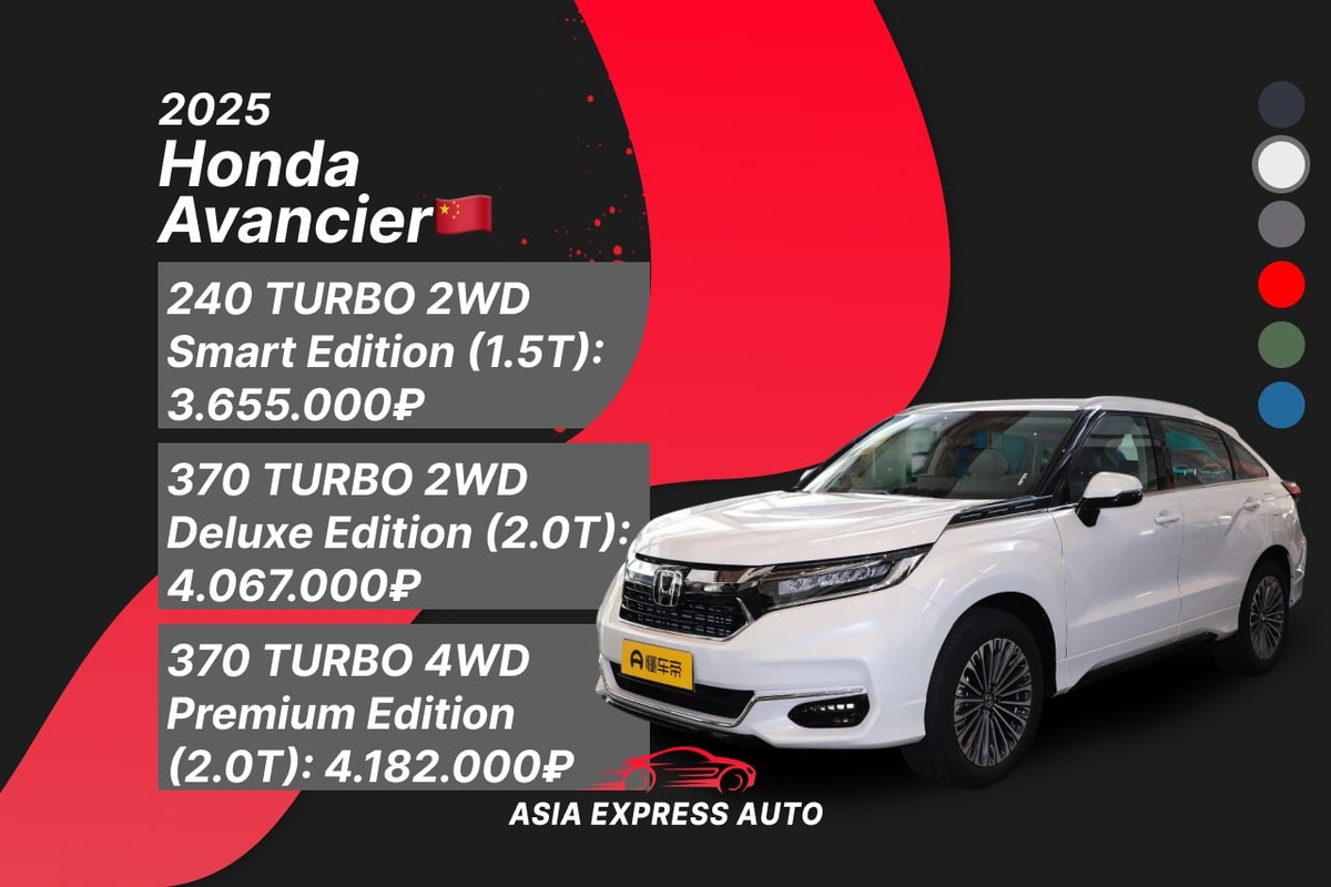 🔔 ПРАЙС НОВЫХ АВТО 💸 🔖Стоимость автомобилей рассчитана по курсу на сегодняшнее число до нашей стоянки в г. Благовещенск или Владивосток, с полным пакетом документов для постановки на учет! 🔖 Отправка в любой город! ❗️На некоторые новые автомобили сейчас можно получить дополнительную скидку! 1️⃣HONDA AVANCIER 2025 новый! ▫️Год: 2025 ▫️Двигатель: 1.5T (188 л.с) / 2.0T (261 л.с) ▫️Привод: 2WD / 4WD🔥 ▫️Новый автомобиль!💎 💰Стоимость под ключ в РФ: 🔹240 TURBO 2WD Smart Edition (1.5T 188 л.с) (Нажмите на ссылку, чтобы увидеть комплектацию полностью): 3.655.000₽ 🔹370 TURBO 2WD Deluxe Edition (2.0T 261 л.с) (Нажмите на ссылку, чтобы увидеть комплектацию полностью): 4.067.000₽ 🔹370 TURBO 4WD Premium Edition (2.0T 261 л.с) (Нажмите на ссылку, чтобы увидеть комплектацию полностью): 4.182.000₽ 💸По курсу юаня 11.6 2️⃣HONDA UR-V 2024 новый! ▫️Год: 2025 ▫️Двигатель: 2.0T (261 л.с) ▫️Привод: 4WD🔥 ▫️Новый автомобиль!💎 💰Стоимость под ключ в РФ: 🔹370 TURBO Premium Edition (2.0T 261 л.