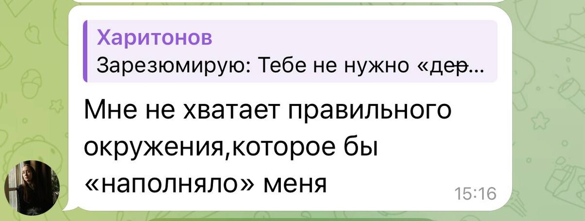 Как бы это больно не было, но ты для этого окружения «не вкусный» Я это осознал, только спустя время. Что мы притягиваем ровно то, на что способны и что готовы принять. 3 года назад у меня была одна мысль, которая заставляла меня становиться лучше каждую минуту: Я не интересен сам себе. Я скучный, мне даже самому с собой скучно И задавал себе вопрос: с какого хрена, другим, со мной будет интересно?; Я был «не вкусен» для окружения «выше» меня. Сейчас я понимаю, что если у меня нет желаемого окружения/дохода/результата.. Значит я еще сам, не того уровня. И единственный вариант притянуть это - это стать этим самому. Стать «вкусным» для этих людей/событий/вещей, чтобы они сами пришли. Прямо сейчас. С тем, что у тебя есть, потому что большего - не дано.