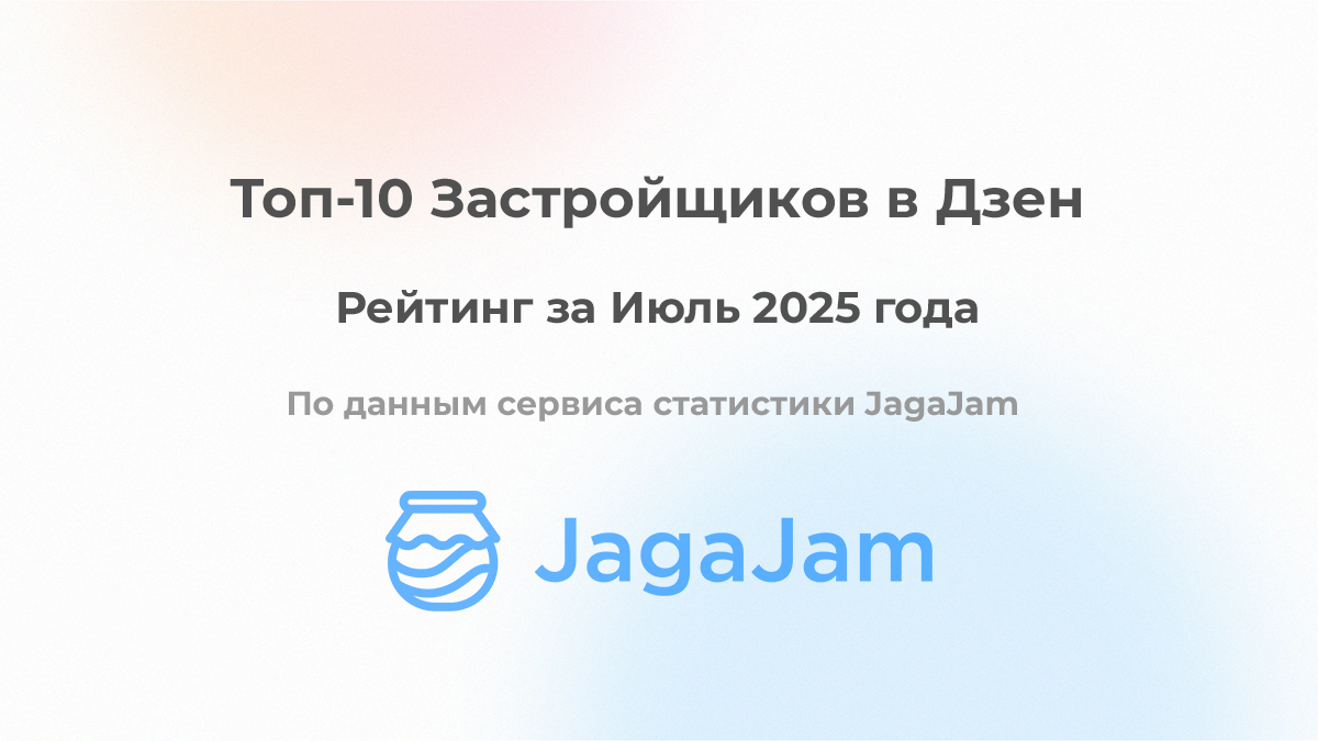 5. @arban АРБАН - 69% Данные из сервиса статистики соцсетей JagaJam, среди топ-55 каналов Застройщиков в Дзен по подписчикам за период 01.07.2025 по 31.07.2025. Не нашли свое сообщество в Рейтинге? Напишите нам 😉 * вовлечённость на страницу (Page ER) - процент подписчиков, которые совершают реакции на странице.
