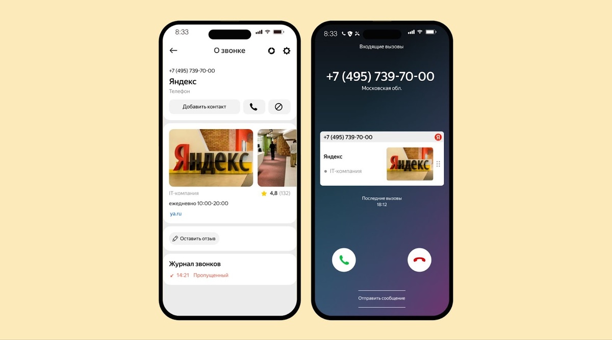 В определителе номера Яндекса появились фото и рейтинги компаний