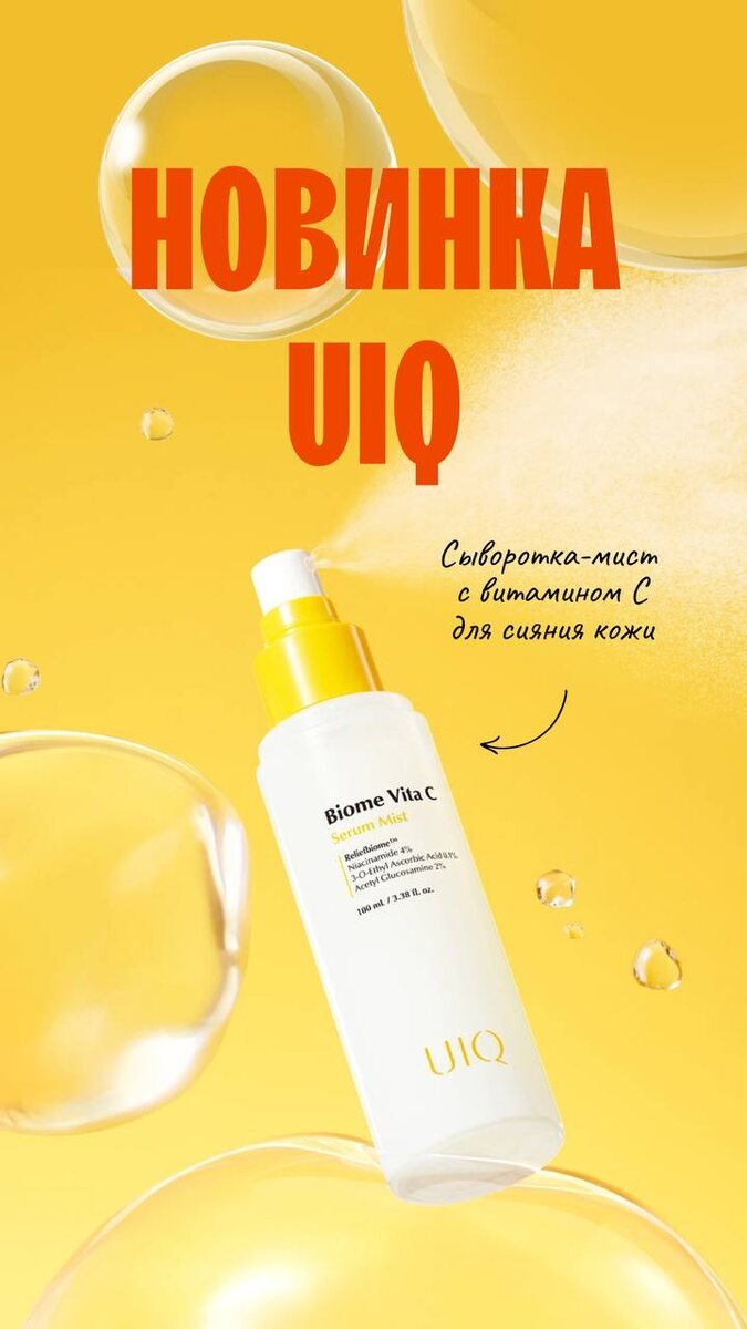 Продолжаем хит-парад мистов UIQ снова радует новинкой — встречайте сыворотку-мист, которая дополняет любимую линейку с витамином C 💧 Теперь в осветляющем семействе полный состав: 💧гидрофильное масло 💧сыворотка-мист 💧сыворотка 💧патчи 💧набор масок С таким набором пигментация сдается без боя, а лицо светится, как солнце в зените. Ставьте «💧», если это звучит, как лучший мист на лето! И бонус: при покупке баночек бренда на сумму от 4 900 ₽ мы дарим тающий бальзам с оттенком на выбор!