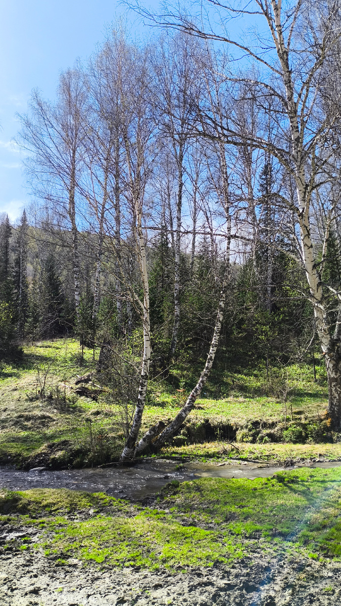 На первые майские запланировали съездить на озеро Колыванское. Вообще там бывал пару раз, но хотелось на мотоцикле поездить по окрестностям, посмотреть достопримечательности. Из Чарышского выехали с Егором 2 мая, у нас было 3 дня, ночевать планировали в палатках. Маршрут планировал такой, чтобы не было бродов, так как весной реки большие. Соответственно, маршрут по селам, где есть мосты. Итак: 1 день. Чарышское - Тулата - Чинета - Усть-Белое - Суетка - Колывань - оз. Колыванское. Выехали в 10 часов. На улице отличная погода, переменная облачность, температура около 15-18 градусов, само то - не жарко. До Тулаты отличная гравийная дорога, 20 минут и мы в Тулате. Тулату проехали, а вот за селом останавливаемся у родника. Здесь самое время набрать воды в дорогу. Водица бежит прям из под горы, чистейшая и свежайшая. Небольшой отдых. Вокруг красота, пение птиц, вокруг уже зелено! Далее путь лежит по грунтовой дороге по сопкам да горкам в сторну дороги на село Генералка. Сейчас дорога сухая,