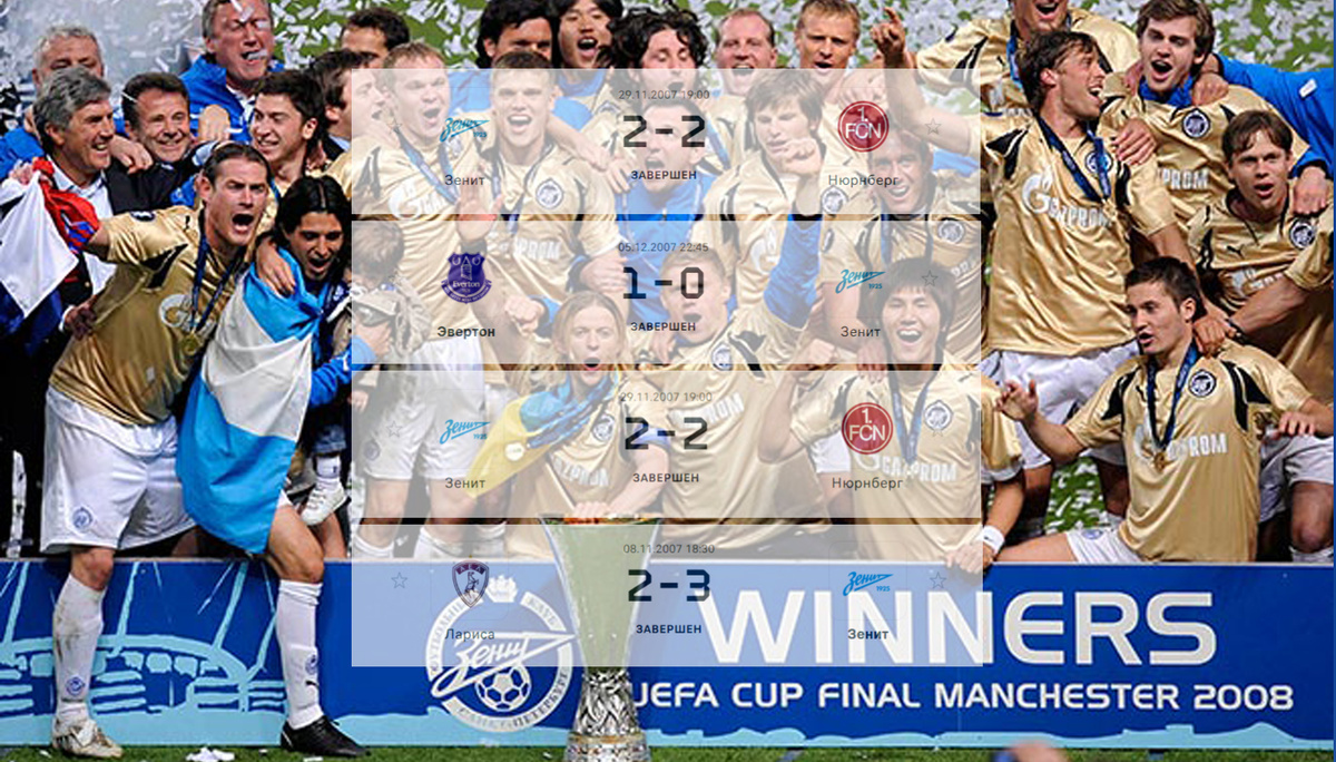 В 2007 году «Зенит» был далёк от статуса «еврокубкового гиганта». Команда, основанная в 1925 году, лишь в 1999-м впервые выиграла Кубок России, а в чемпионате страны боролась за места в верхней половине таблицы. Всё изменилось с приходом голландского специалиста Дика Адвокаата в 2006 году. Он собрал команду, которая не только выиграла первый титул чемпиона России в 2007-м, но и совершила невозможное - завоевала Кубок УЕФА, став вторым российским клубом, добившимся такого успеха.
